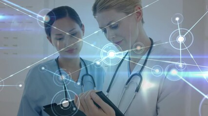 Doctors Collaborating With Network Technology Overlay Videos