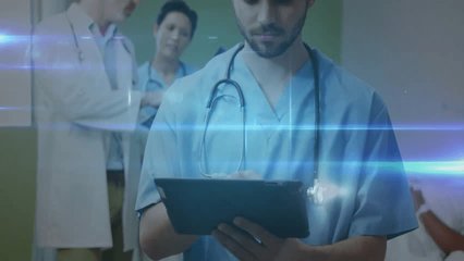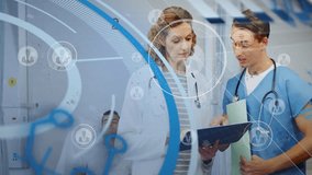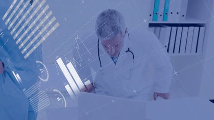 Doctors Discussing Patient Data With Technology Interface Overlay Videos