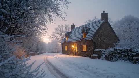 snowy cottage