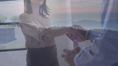 Double Exposure Of Office Collaboration And Digital Interaction Videos