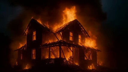 Dramatic Nighttime Blaze With Rising Embers Videos