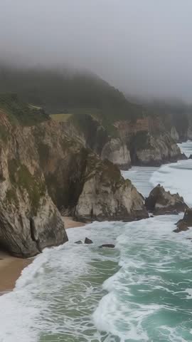 Dramatic Ocean Waves Crashing Against Rugged Cliffs At Sunset Videos