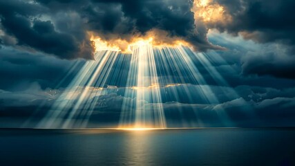 Dramatic Sunrise With Sunbeams Breaking Through Storm Clouds Videos