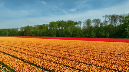 Dutch Flag Waving Over Tulip Fields In Springtime Videos