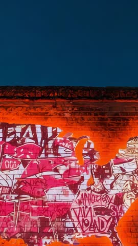 Dynamic Camera Movement Reveals Vibrant Graffiti Mural In Urban Setting Videos