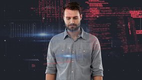 Dynamic Data Processing With Clock Animation On Blue Digital Background Videos