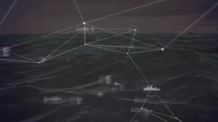 Dynamic Data Visualizations Over Tranquil Ocean Dusk Videos