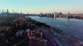 Dynamic Digital Data Overlay On Vibrant Cityscape Videos