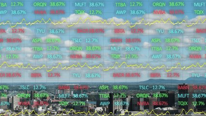 Dynamic Digital Financial Data Overlay With Cityscape Background Videos