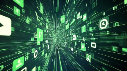 Dynamic Digital Icons With Binary Code And Data Streams Videos
