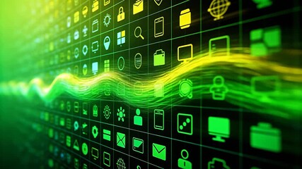 Dynamic Digital Interface With Tech Icons And Network Waves Videos