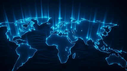 Dynamic Digital Network On Futuristic Blue World Map Videos