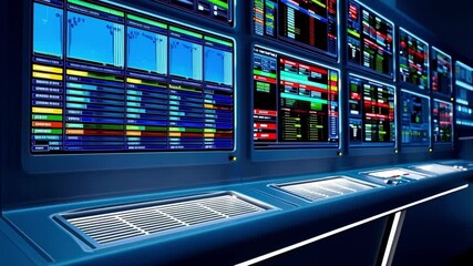 Dynamic Financial Analysis In High Tech Server Room Videos