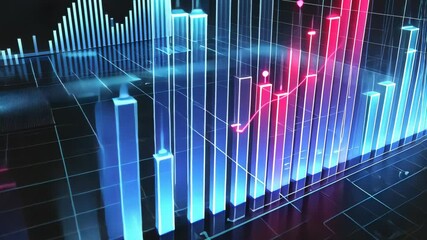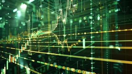 Dynamic Financial Data Analysis On High Tech Grid Background Videos