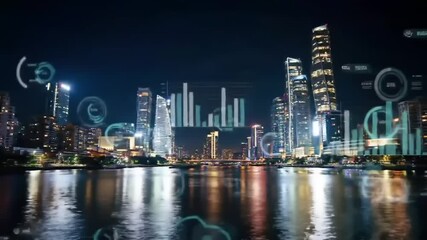 Dynamic Financial Data Animation With City Skyline Backdrop Videos