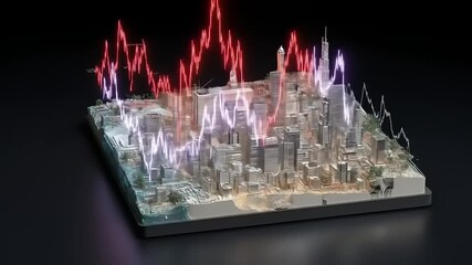 Dynamic Financial Data On Urban Cityscape Background Videos
