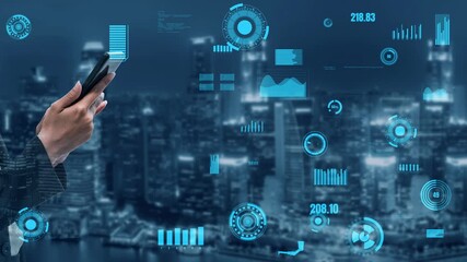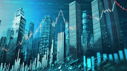 Dynamic Financial Data Over Futuristic Urban Skyline Videos