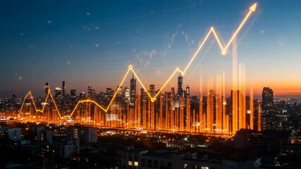 Dynamic Financial Data Overlaid On Urban Skyline Videos