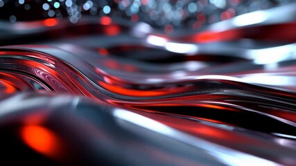 Dynamic Red Waves With Floating Particles On Black Background Videos