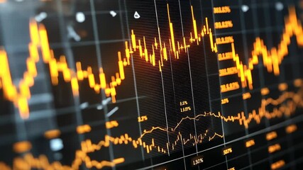 Dynamic Stock Market Data Display With Declining Trend Line Videos