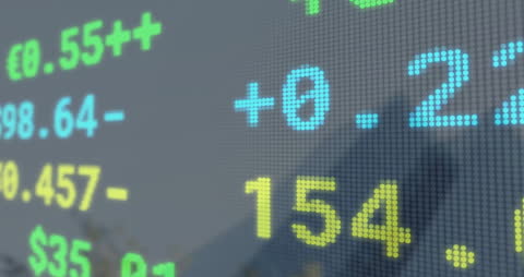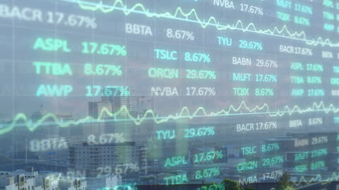 Dynamic Stock Market Data Overlaid On Busy City Walkway Videos