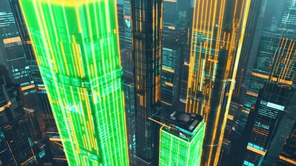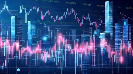 Dynamic Stock Market Data Overlaid On Skyscrapers Videos