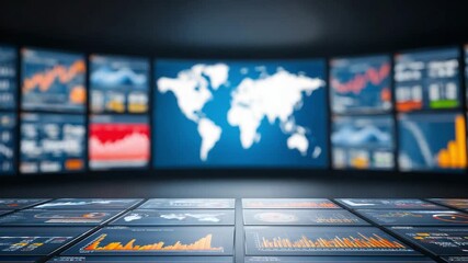 Dynamic World Map With Data Visualization On Digital Screen Videos