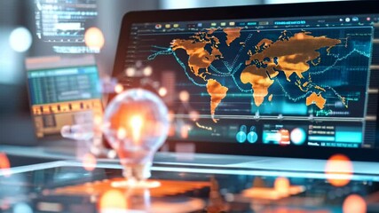 Dynamic World Map With Data Visualization On Digital Screen Videos