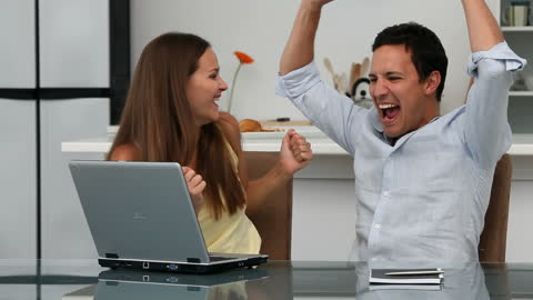 Ecstatic Man Celebrating Success With Laptop At Home Videos