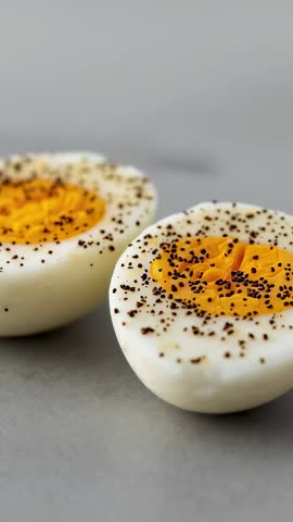 peppered boiled egg halves