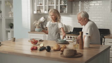Elderly Couple Cooking Amidst Futuristic Tech Coding Videos