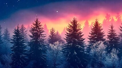 Enchanted Winter Scene With Silhouettes And Trees Videos
