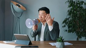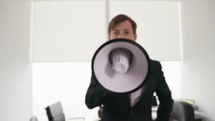 Energetic Man Shouting Into Megaphone For Announcement Videos