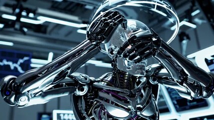 Engineer Adjusting Humanoid Robot In Tech Laboratory Videos