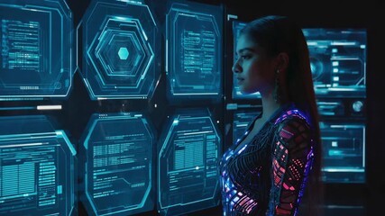 Engineer Analyzing Server Data With Futuristic Interface Videos
