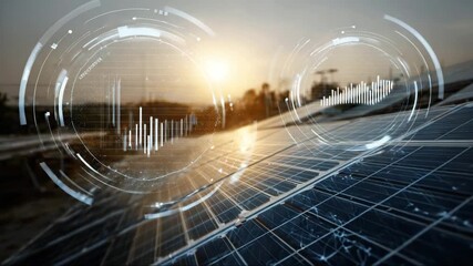 Engineer Analyzing Solar Panels With Data Overlay Videos