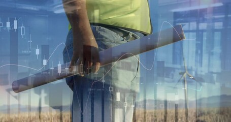 Engineer Analyzing Wind Farm Data With Visualization Videos