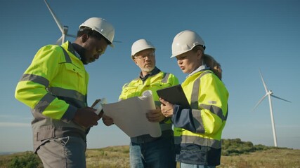 Engineer Analyzing Wind Turbine Blueprint In Field Videos
