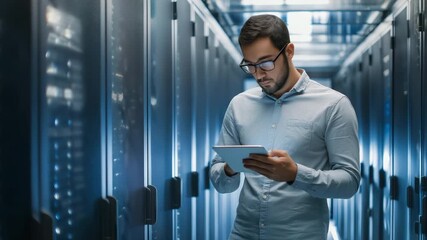 Engineer Maintaining Server Infrastructure In Data Center Videos