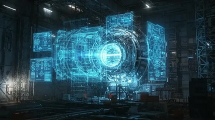 Engineers Analyzing Data With Futuristic Interface In Factory Videos