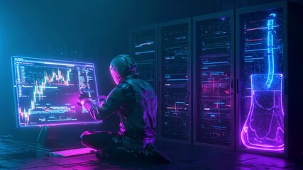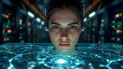Engineers Analyzing Data With Futuristic Interface In Server Room Videos