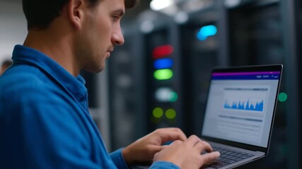 Engineers Analyzing Data With Futuristic Interface In Server Room Videos