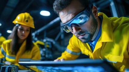 Engineers With Tablet Analyzing Data In Industrial Environment Videos