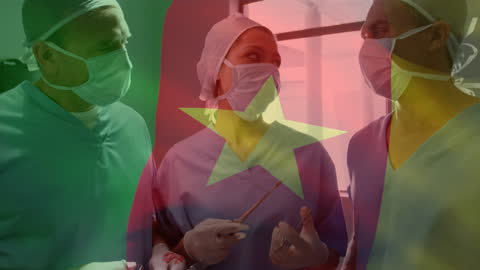 European Flag Overlay On Surgical Procedure With Diverse Doctors Videos
