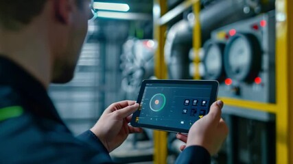Factory Worker Communicating Using Smartphone With Digital Interface Videos