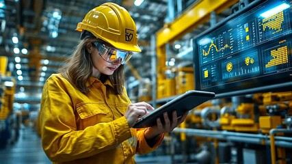 Female Construction Worker Using Tablet For Digital Analysis Videos