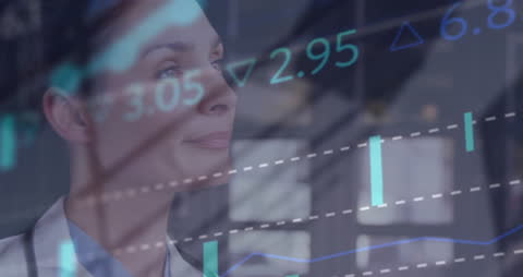 Female Doctor Analyzing Health Data On Digital Interface Overlay Videos