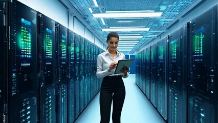 Female Engineer Communicates In High Tech Server Room Videos