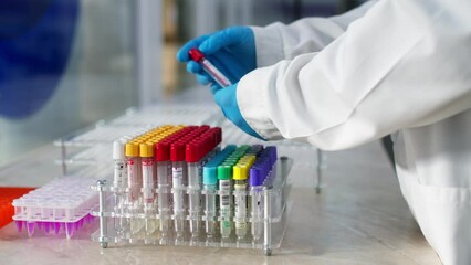 Female Scientist Analyzing Blood Sample In Innovative Lab Videos