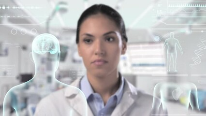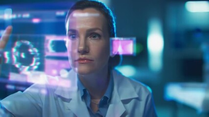 Female Scientist Working With Holographic Data In Laboratory Videos